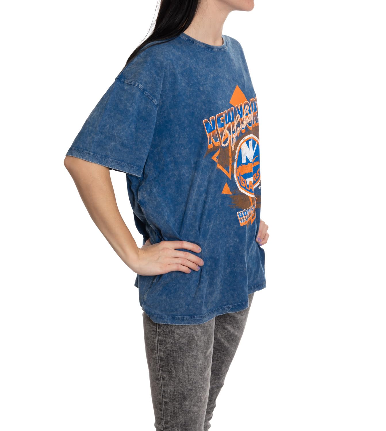 -50%Calhoun NHL Womens Oversized Loose Fit Drop Shoulder Vintage Style Acid Wash Crewneck Short Sleeve T-Shirt—
